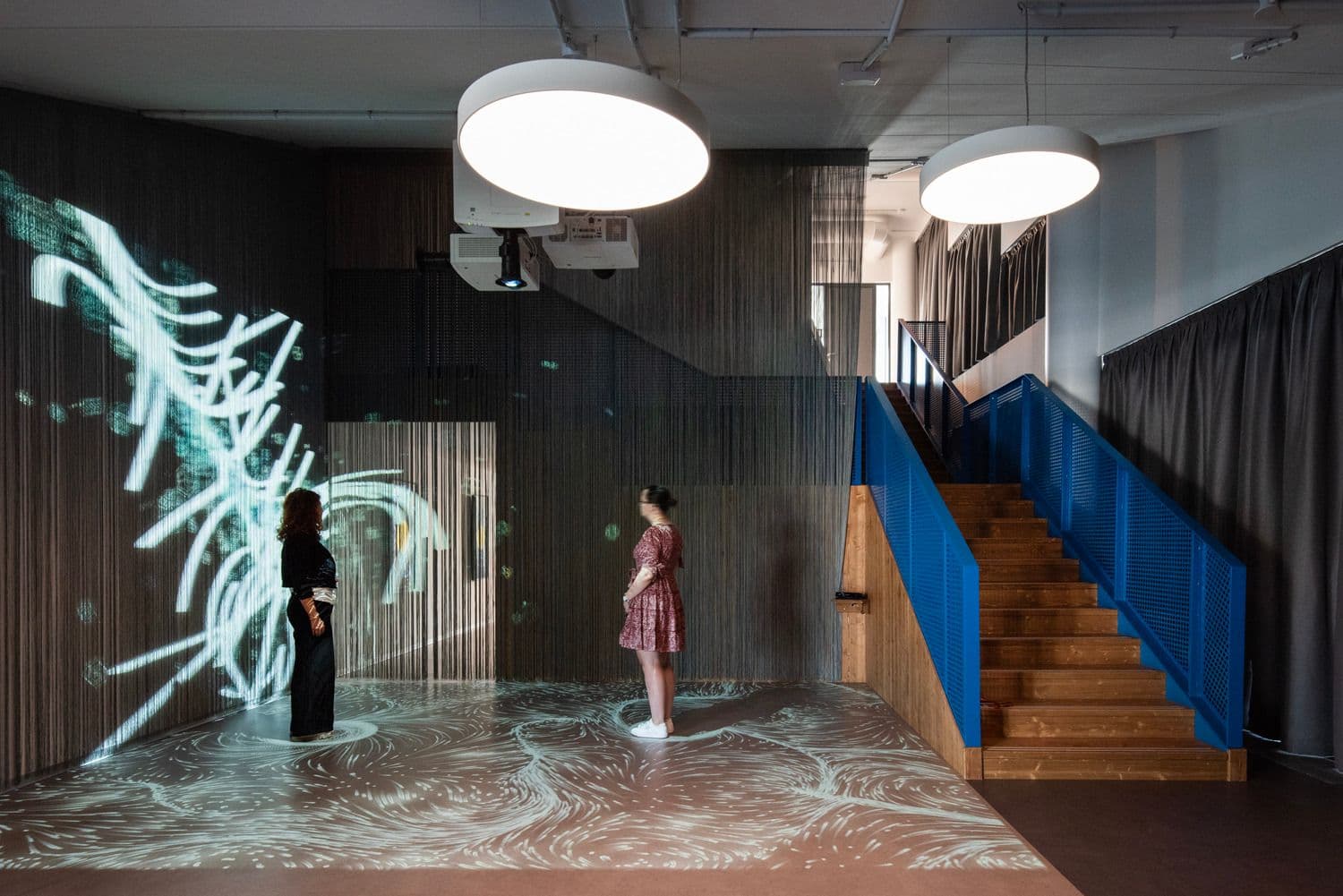 The project redevelops a space originally defined by a rigid layout, transforming it into a modular and flexible environment. On the ground floor, the reception, info point, experiential corridor, and a divisible training room are designed to host group learning activities, while interactive screens guide users along the paths and support the learning experience.