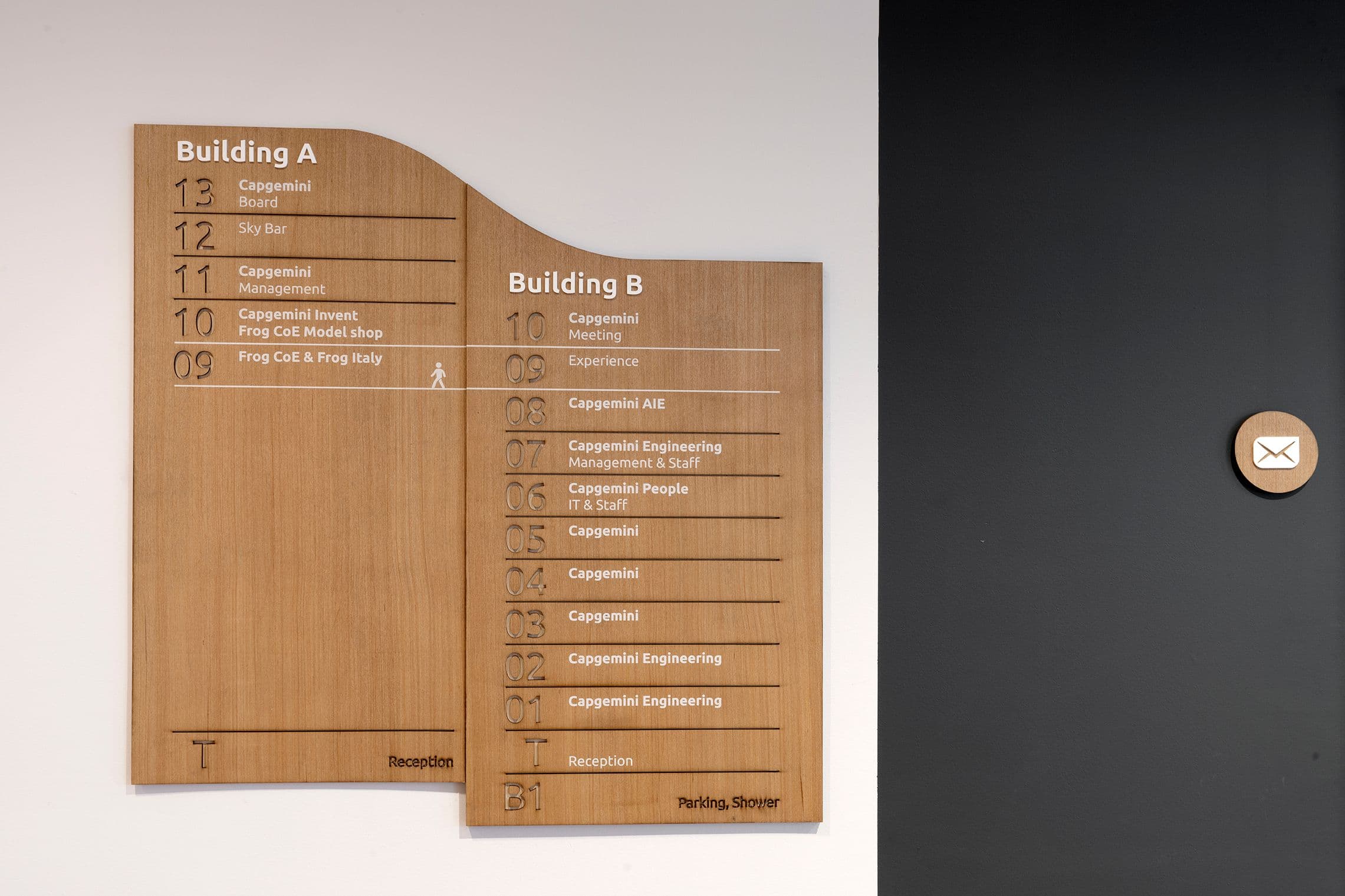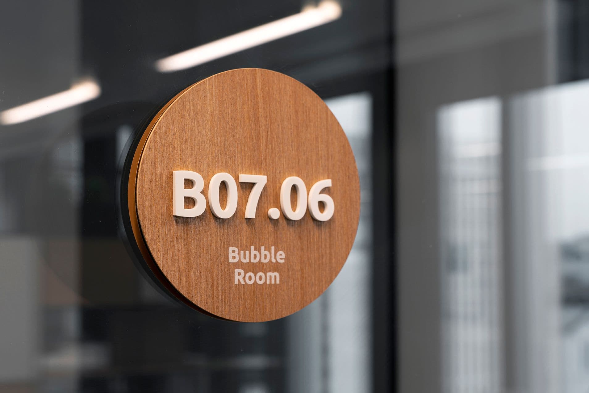 Sustainability is a central theme of the project, reinforced by an in-depth approach to physical branding and communication design that strengthens the overall identity of the headquarters.