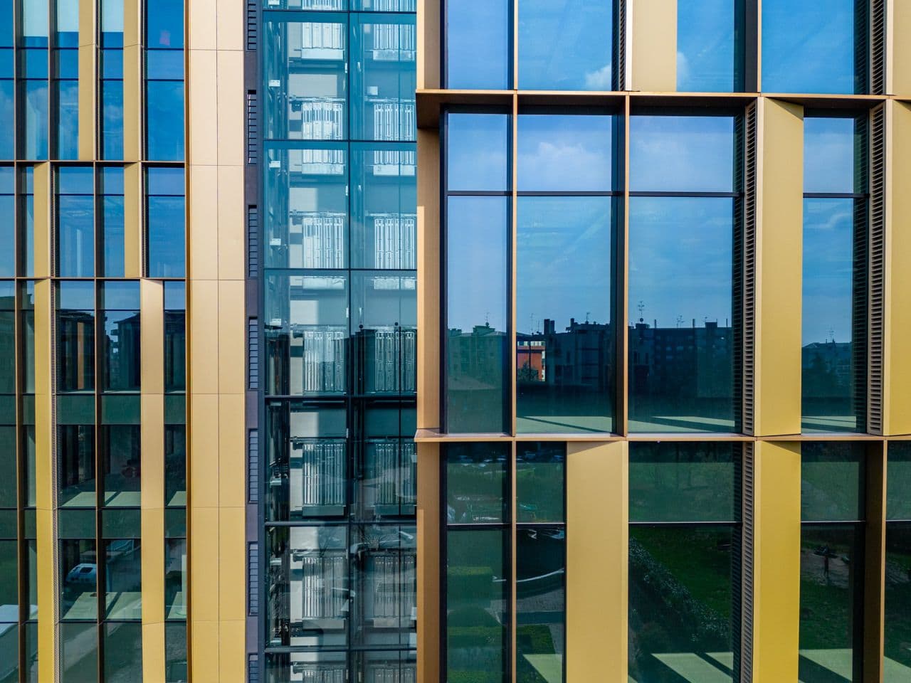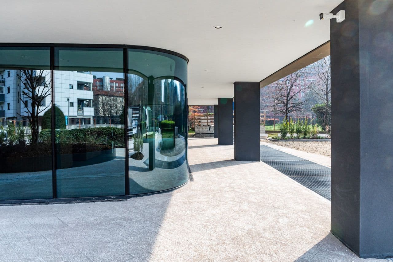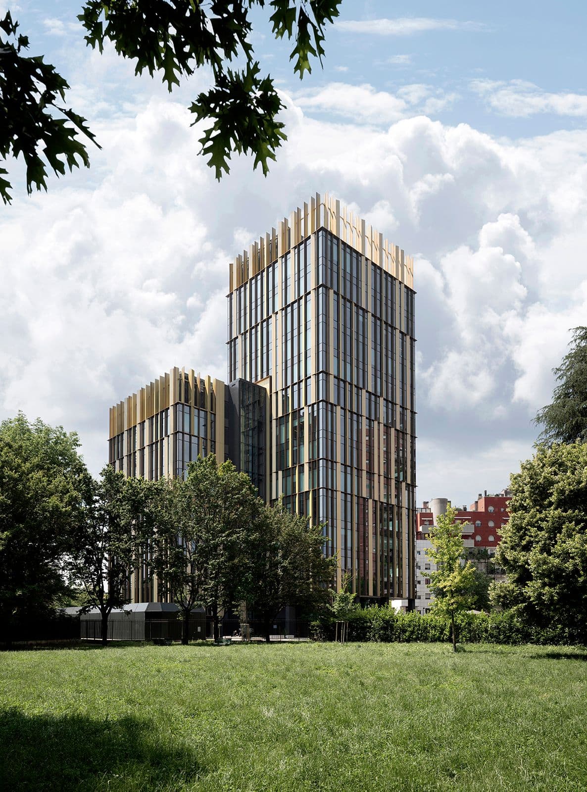 The building is developed in two towers of 8 and 14 floors, characterized by a facade where metal elements and glazing create a vertical rhythm. The internal spaces, flexible and divisible, respond to different usage needs. The project, compliant with the highest ESG standards, obtained WELL Gold and LEED Platinum certifications thanks to sustainable choices, such as: the collection and reuse of rainwater, material recycling, the use of low-carbon glass, the installation of photovoltaic panels and sensors for monitoring air quality, and maximizing comfort and natural light contribution.