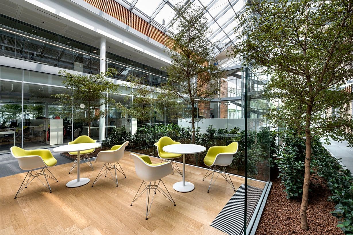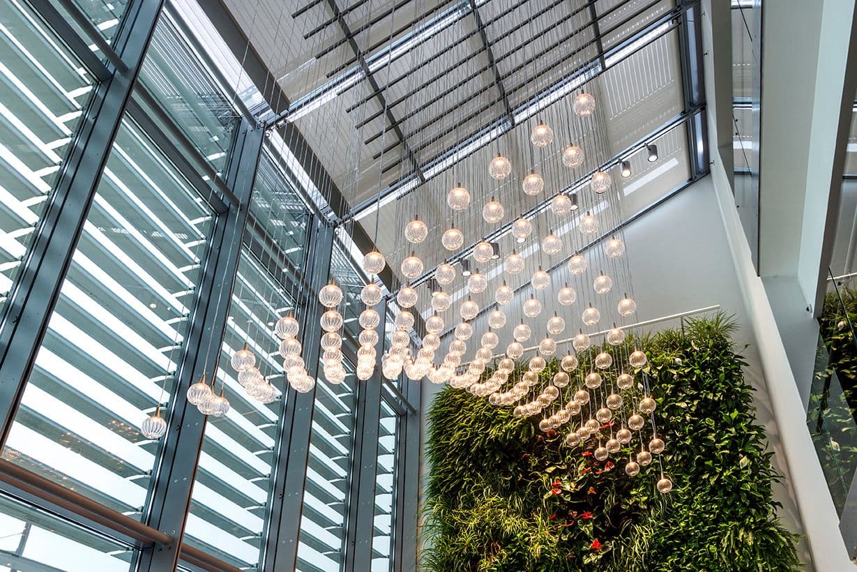 The project encompasses interior design, space planning, and furniture selection for the office and laboratory spaces, in harmony with a minimalist, high-tech architectural design featuring glass, anodized aluminum, stainless steel, and acrylic. The spaces are organized according to an open-work logic: 69% of the floor area is dedicated to open space, including the top management area, while the remainder houses support spaces and bioclimatic greenhouses for informal meetings. Color, natural light, and understated furnishings define a balanced system between functionality and interaction. The project roll-out has been supported by a workplace change management process to foster buy-in, engagement, and a new work culture.