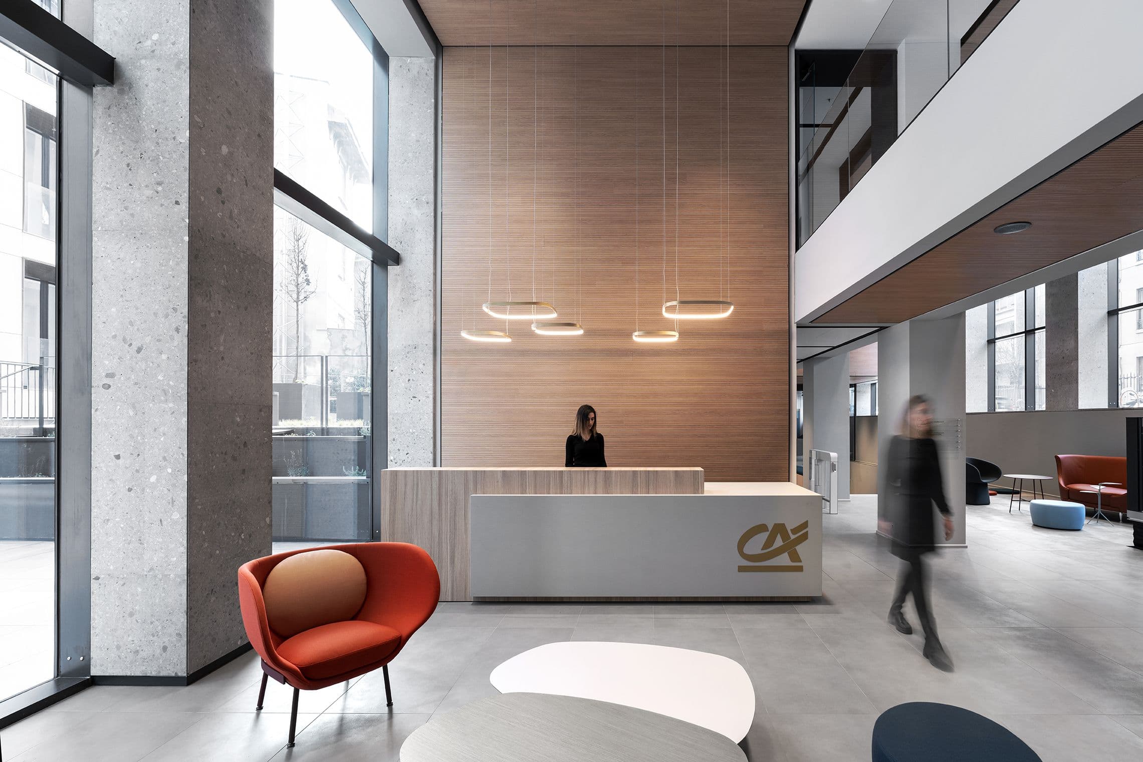 The project preserves the original 1962 structure while redefining façade and systems through rotated modules, advanced BIM processes, and high energy standards.