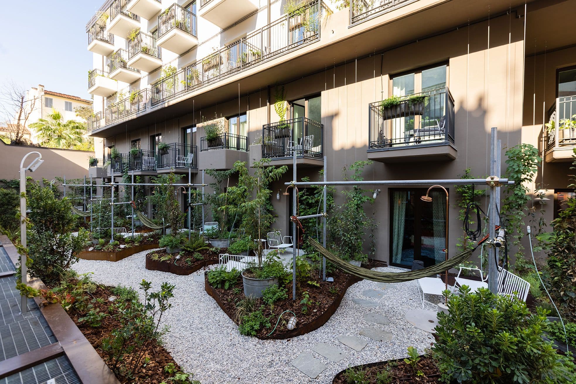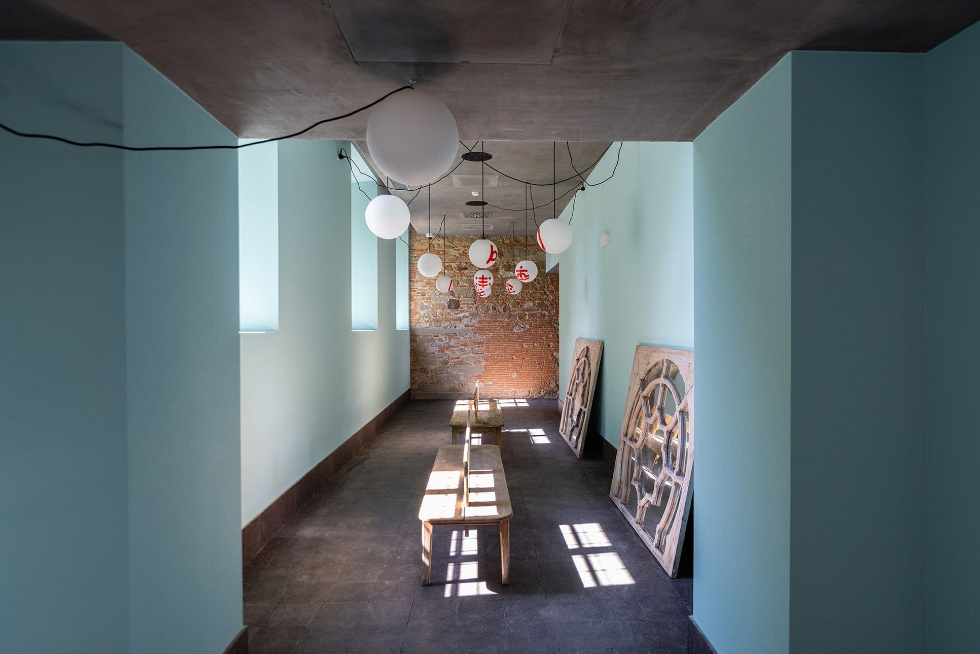 Il complesso si compone di tre volumi: un palazzo storico, ex monastero dell’XI secolo annesso alla chiesa di San Paolino; una porzione di edificio di nuova costruzione con giardino; e una suite indipendente ricavata in un edificio esistente. Oltre alle camere, il complesso ospita una spa e una palestra, aree meeting e gioco, un parcheggio interrato, una vasta area verde, un ristorante collocato sotto la grande cupola centrale e affacciato su un cortile interno, un bar e un tipico negozio di alimentari aperto sulla piazza. Il progetto interviene inoltre sul contesto urbanistico circostante, ridisegnando l’assetto della piazza.