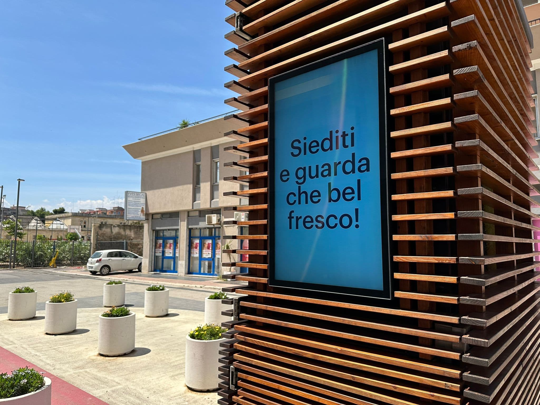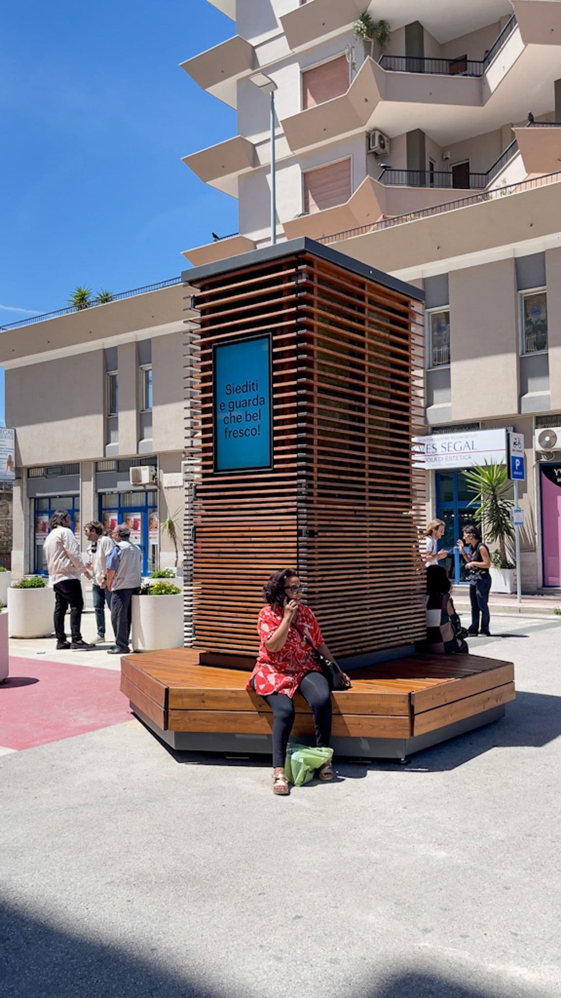 La struttura è stata installata a Bari sulla base dell’analisi dei flussi pedonali, integrando principi di neuroscienze e psicologia ambientale per migliorarne accessibilità e visibilità.