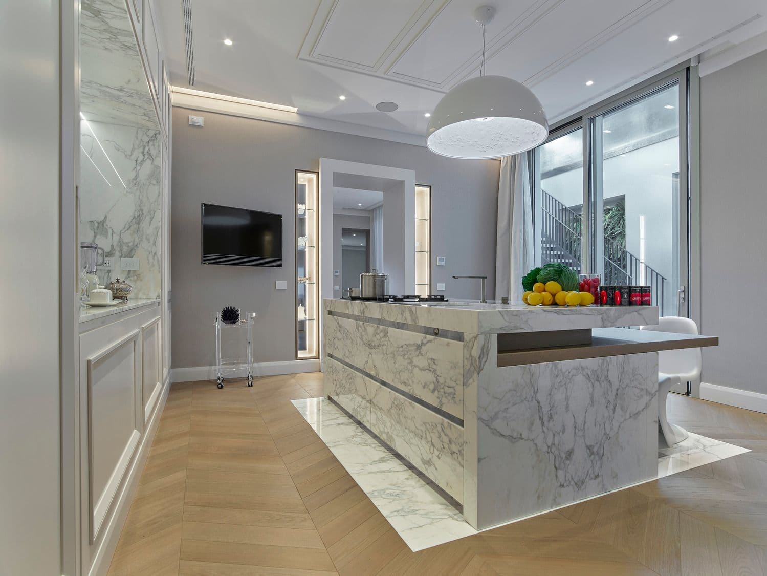 L’abitazione privilegia un’atmosfera intensa, enfatizzata da texture vivaci alle pareti e rapporti liberi tra gli elementi. L’uso del legno e delle superfici curve dona calore e movimento, in contrasto con il bianco dei parapetti e la luminosità naturale che pervade lo spazio. Particolare attenzione è riservata alla spa privata, caratterizzata da forme organiche e fluide. Attraverso i patii interni, il percorso si apre verso le terrazze superiori attrezzate con piscina, pensate come salotti-giardino all’aperto con vista aperta sul Golfo di Salerno e sulla Costiera amalfitana. Terrazze-giardino di lusso, “way out of this world”.