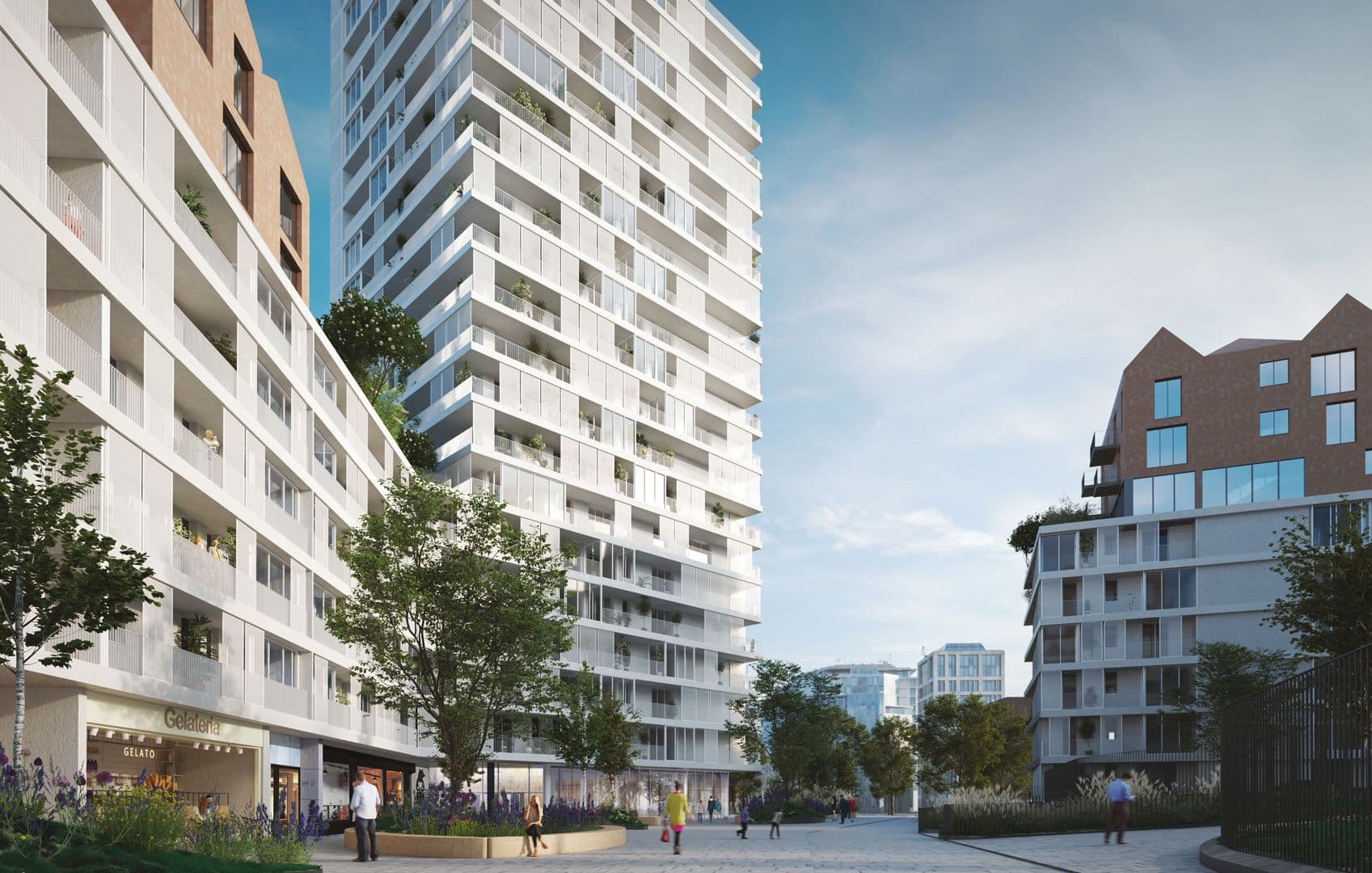 Il concept massimizza le superfici abitative e la socialità, organizzando i volumi lungo il perimetro e introducendo aperture che connettono boulevard urbano e parco, in continuità con l’isolato milanese.