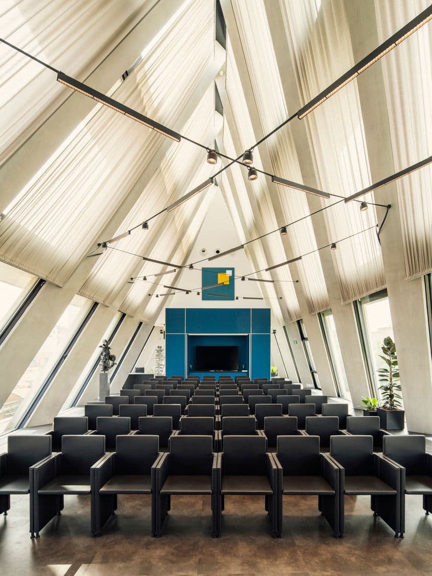 La sequenza tra lobby, ambienti operativi e spazi di rappresentanza costruisce un vero e proprio percorso di brand, in cui l’identità del Gruppo Cassa Centrale prende forma attraverso l’integrazione tra architettura, arredi e luce.