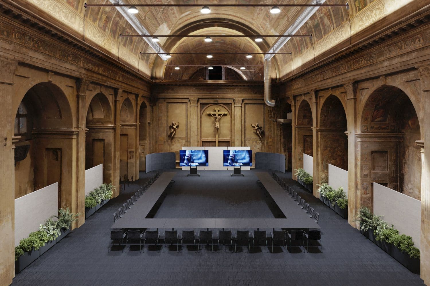 All’interno del nuovo campus Deloitte a Milano, la chiesa sconsacrata di Chiesa di San Paolo Converso, risalente al XVI secolo, è stata oggetto di un progetto di digitalizzazione finalizzato alla sua restituzione funzionale e culturale alla città. Abbiamo realizzato un rilievo digitale integrato tramite fotogrammetria, laser scanner e GNSS, generando una nuvola di punti tridimensionale ad alta precisione. Le informazioni raccolte non si sono limitate alla documentazione dello stato di fatto, ma sono state utilizzate per la costruzione di un modello BIM strutturato dal punto di vista geometrico e informativo. Il modello, concepito come un vero e proprio database intelligente, associa a ogni elemento dati su materiali, stato di conservazione e proprietà fisico-meccaniche. Attraverso un tour virtuale del modello è stato inoltre possibile descrivere, simulare e immaginare scenari futuri per l’utilizzo e la valorizzazione della chiesa come spazio pubblico ed espositivo.