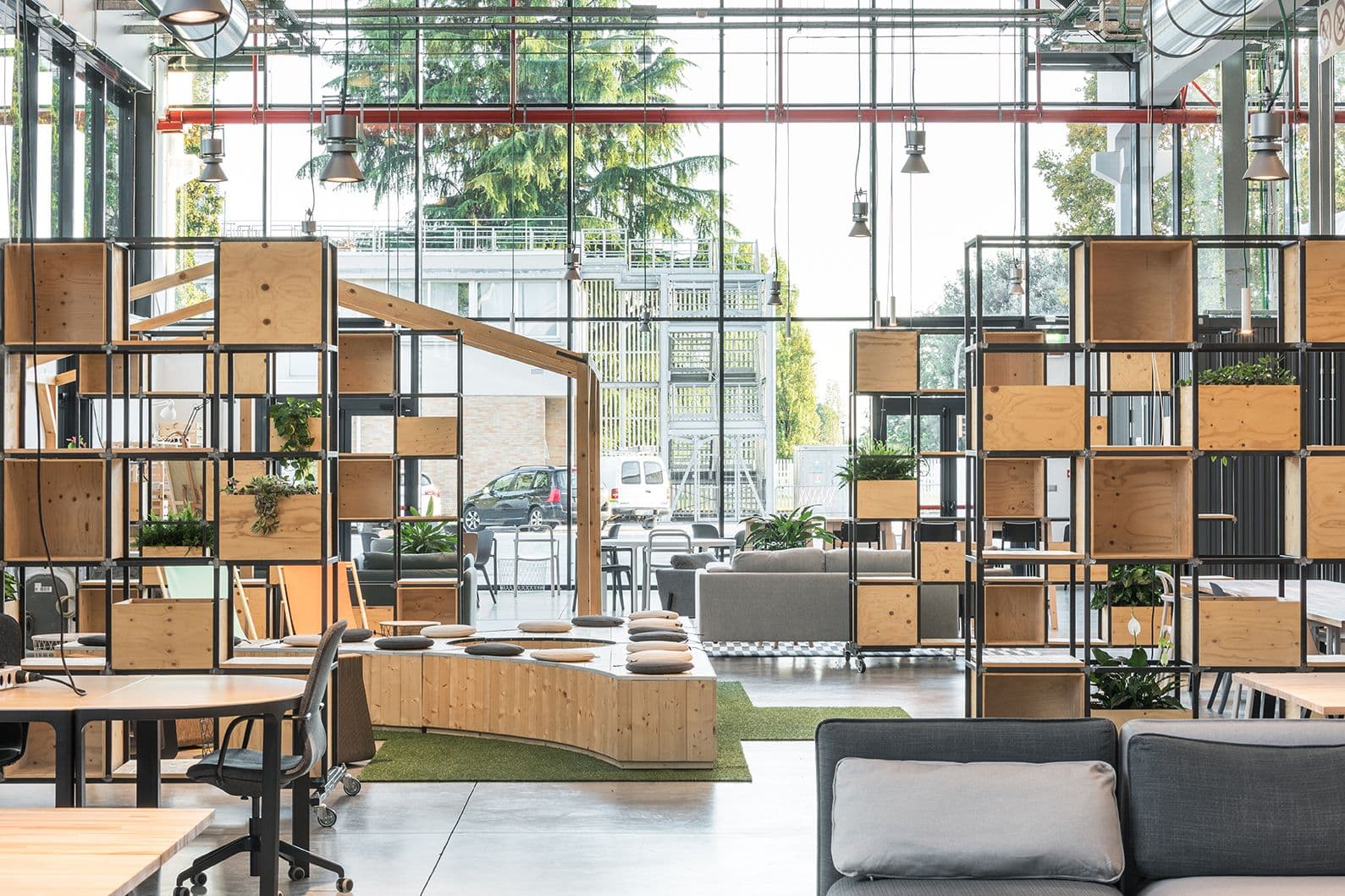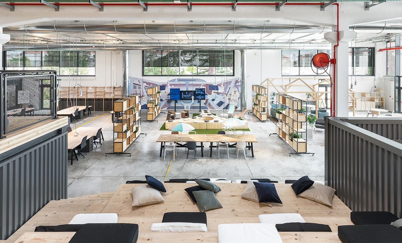 Il progetto valorizza l’estetica industriale originale, articolando aree collaborative, creative e operative a supporto della comunità dell’innovazione Industry 4.0.