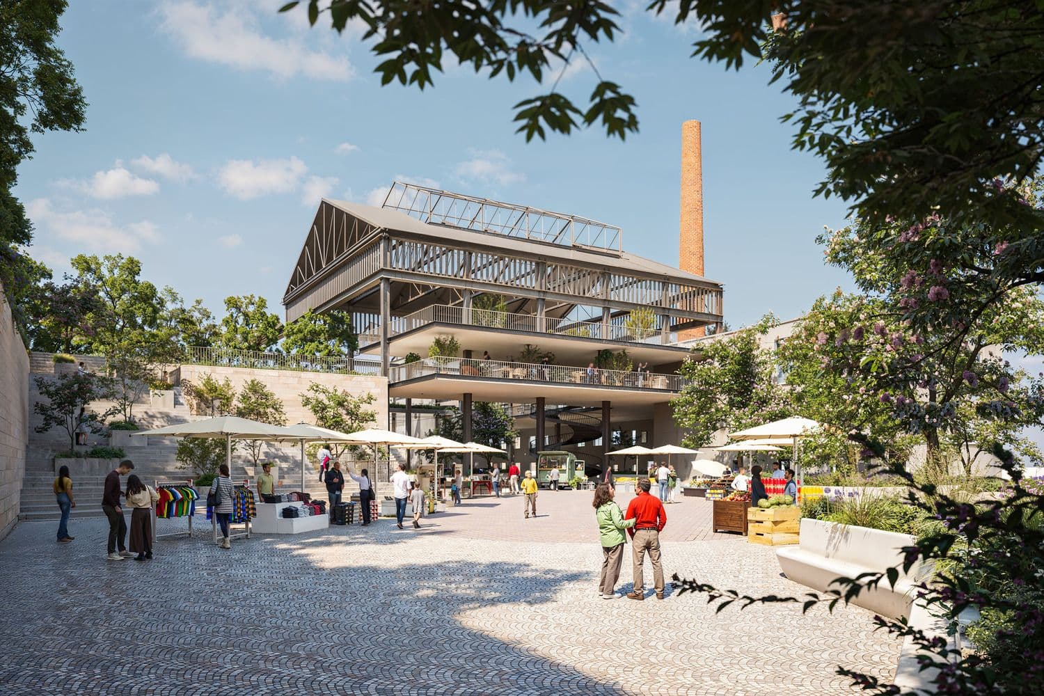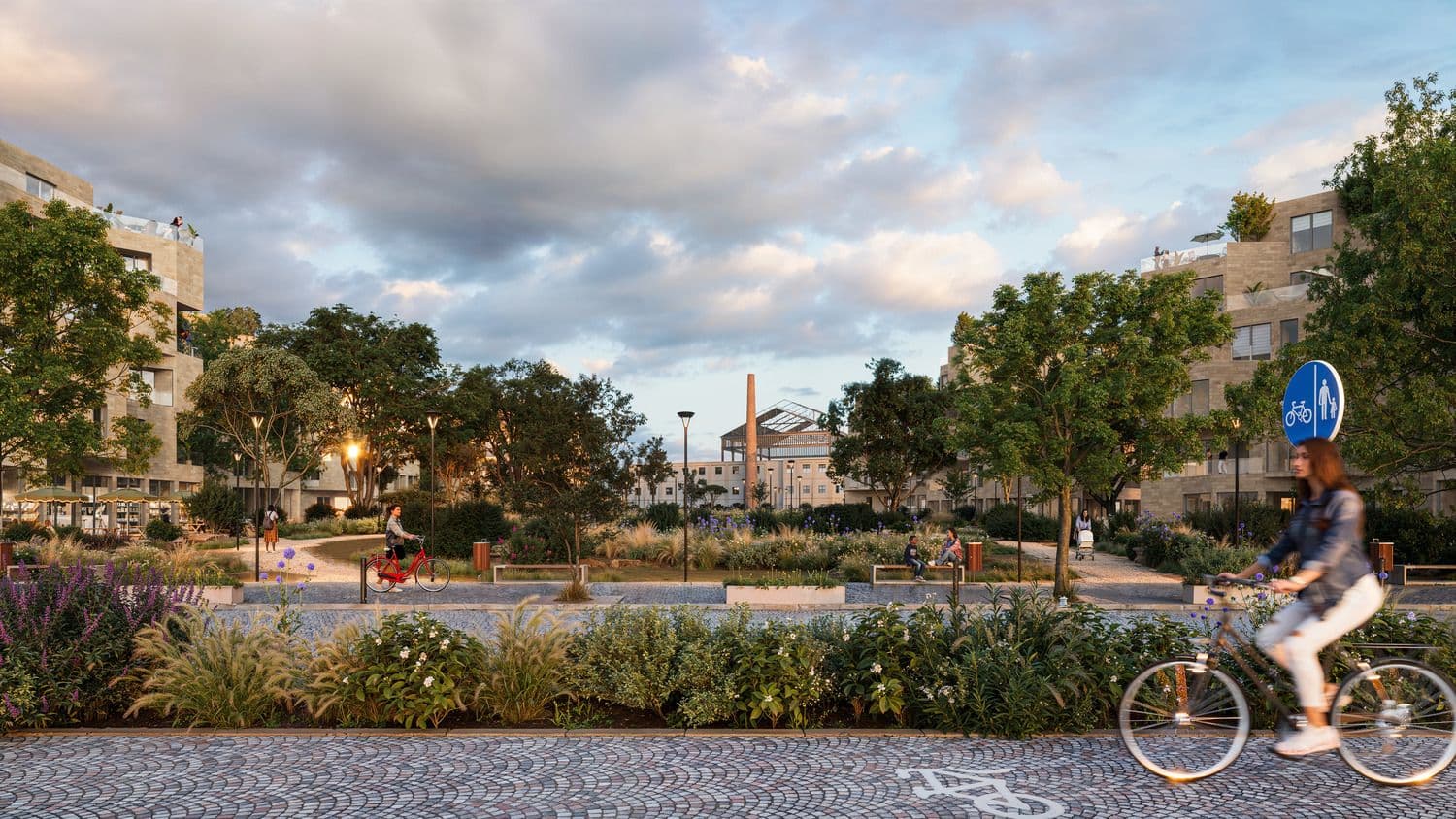 Il progetto introduce un grande parco urbano continuo, una rete di spazi pubblici e piazze di quartiere, spazi culturali e museali mettendoli a servizio della città. Un nuovo sistema di percorsi privilegia la mobilità sostenibile e connette l’ambito rigenerato al tessuto esistente, integrando strategie di mitigazione climatica all’interno della struttura del parco e delle superfici aperte.