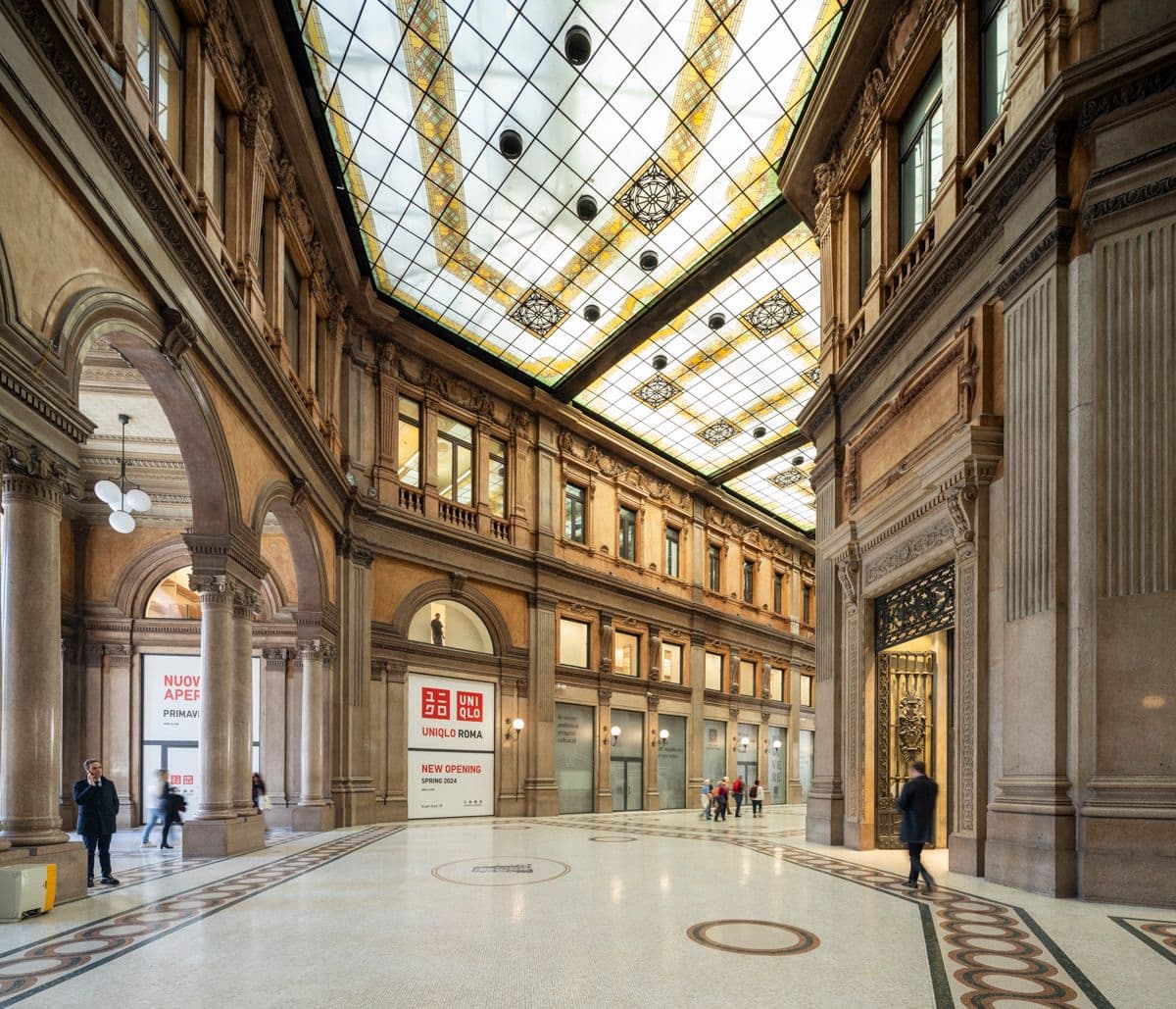 Collocata all’intersezione tra le principali arterie storiche del centro di Roma, la Galleria riconnette la città con un percorso pubblico continuo tra piazza Colonna e Fontana di Trevi. La rimozione delle porte vetrate d’ingresso elimina il filtro tra strada e interno, favorendo un passaggio naturale e fluido. Gli spazi commerciali sono stati accorpati e ridotti da 27 a 15 unità, con nuovi collegamenti verticali e impianti completamente riorganizzati.