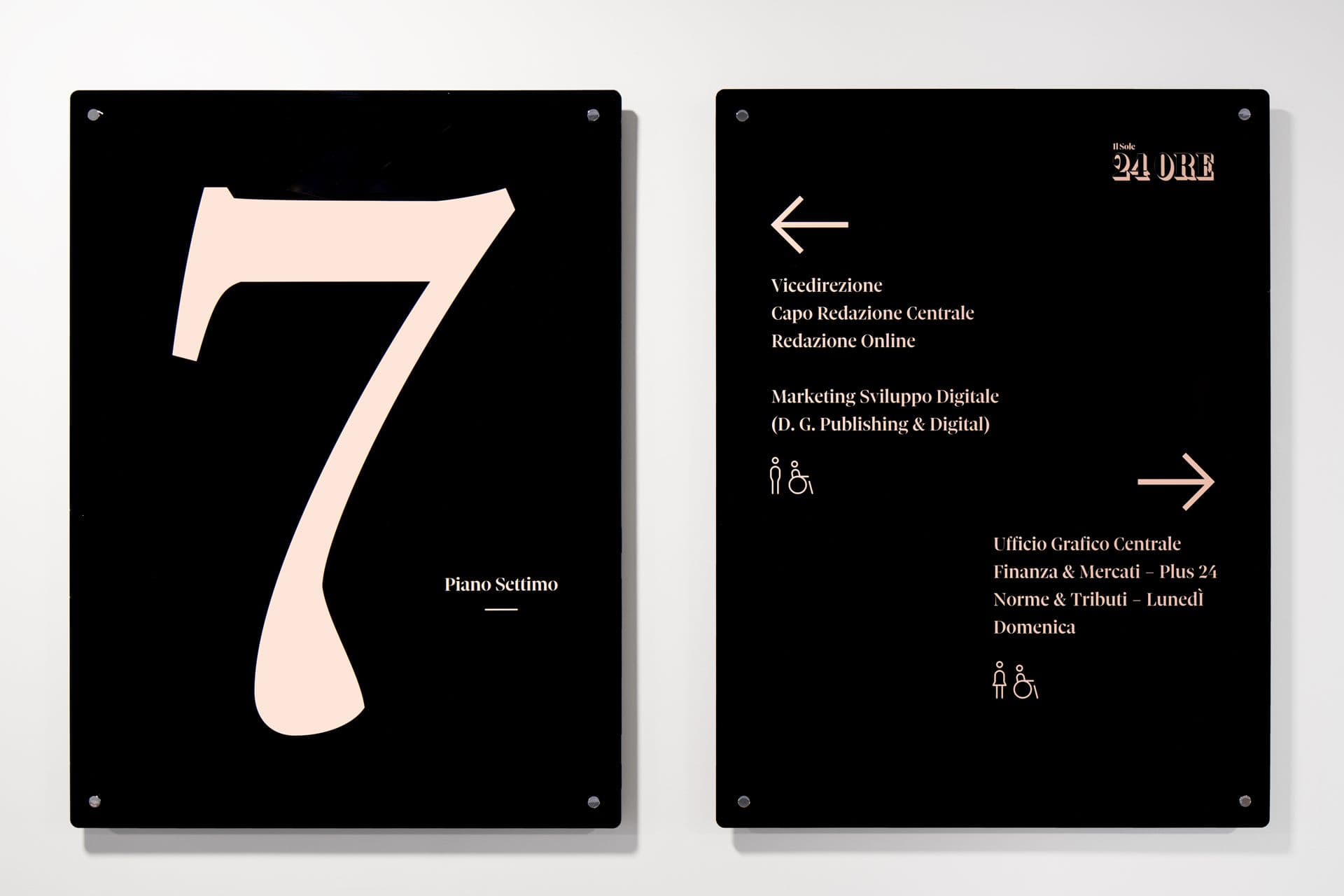 Il linguaggio visivo e la struttura del giornale diventano dispositivo spaziale, rendendo coerente con la vocazione editoriale l’esperienza del luogo e la comunicazione del Gruppo.