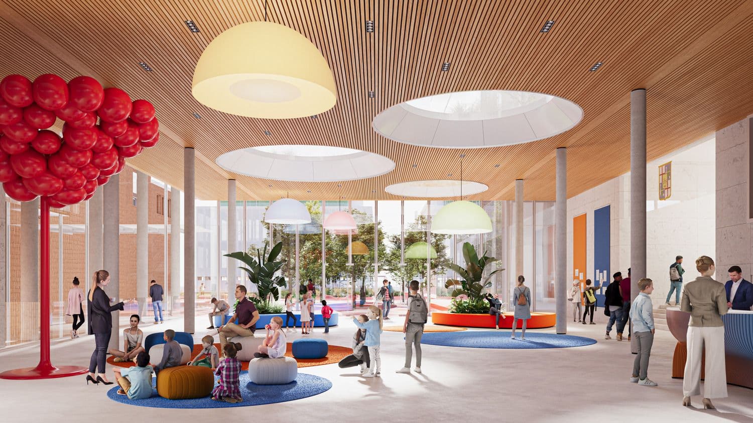 Il rinnovamento del complesso scolastico Leone XIII a Milano trasforma gli spazi interni in ambienti aperti e multiformi capaci di introdurre nuovi scenari di condivisione didattica.