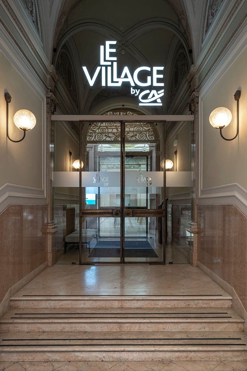 A Parma Le Village by CA apre la propria sede in un palazzo Liberty nel pieno centro cittadino, in precedenza sede della Camera di commercio di Parma, con La Place a doppia altezza sotto un lucernario, il Living Lab e uffici di diverso taglio che dialogano con pavimenti storici e soffitti decorati.
