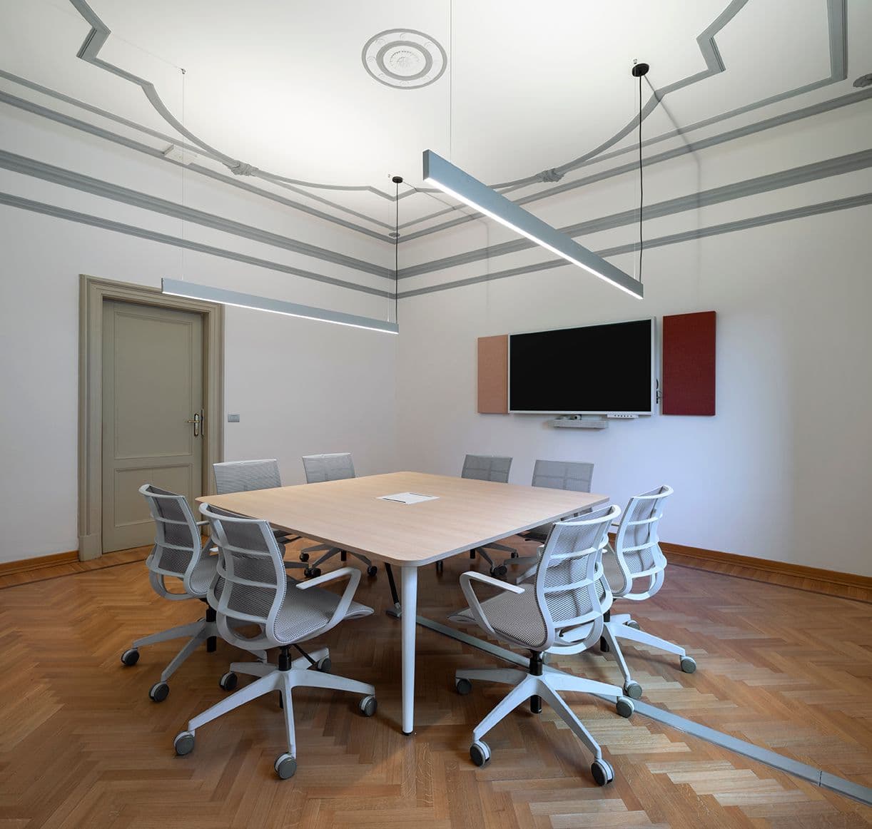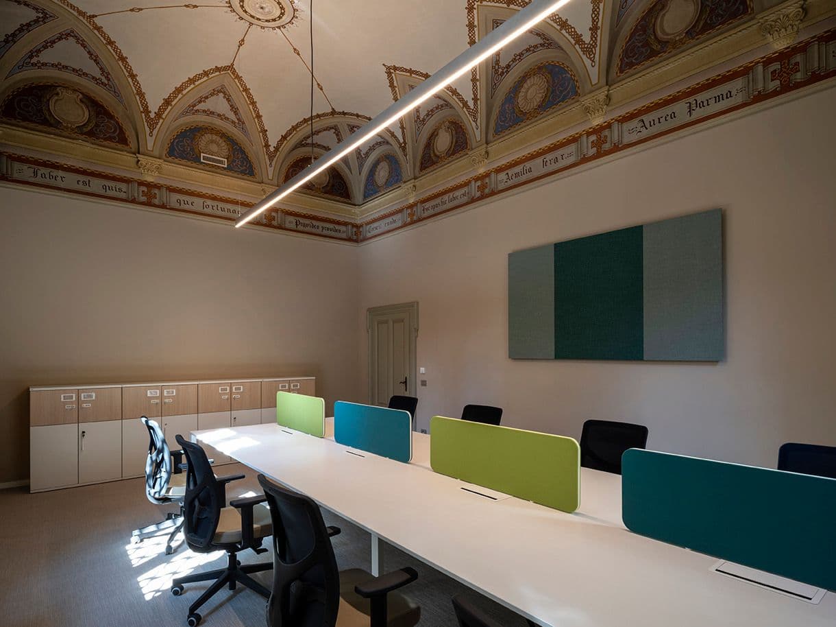 A Milano, in un ex convento quattrocentesco vincolato alla Soprintendenza delle Belle Arti di Milano con chiostro restaurato, tre livelli integrano La Place, Living Lab, uffici e spazi informali affacciati sui portici, con grande attenzione verso acustica, flessibilità e prenotazioni digitali.