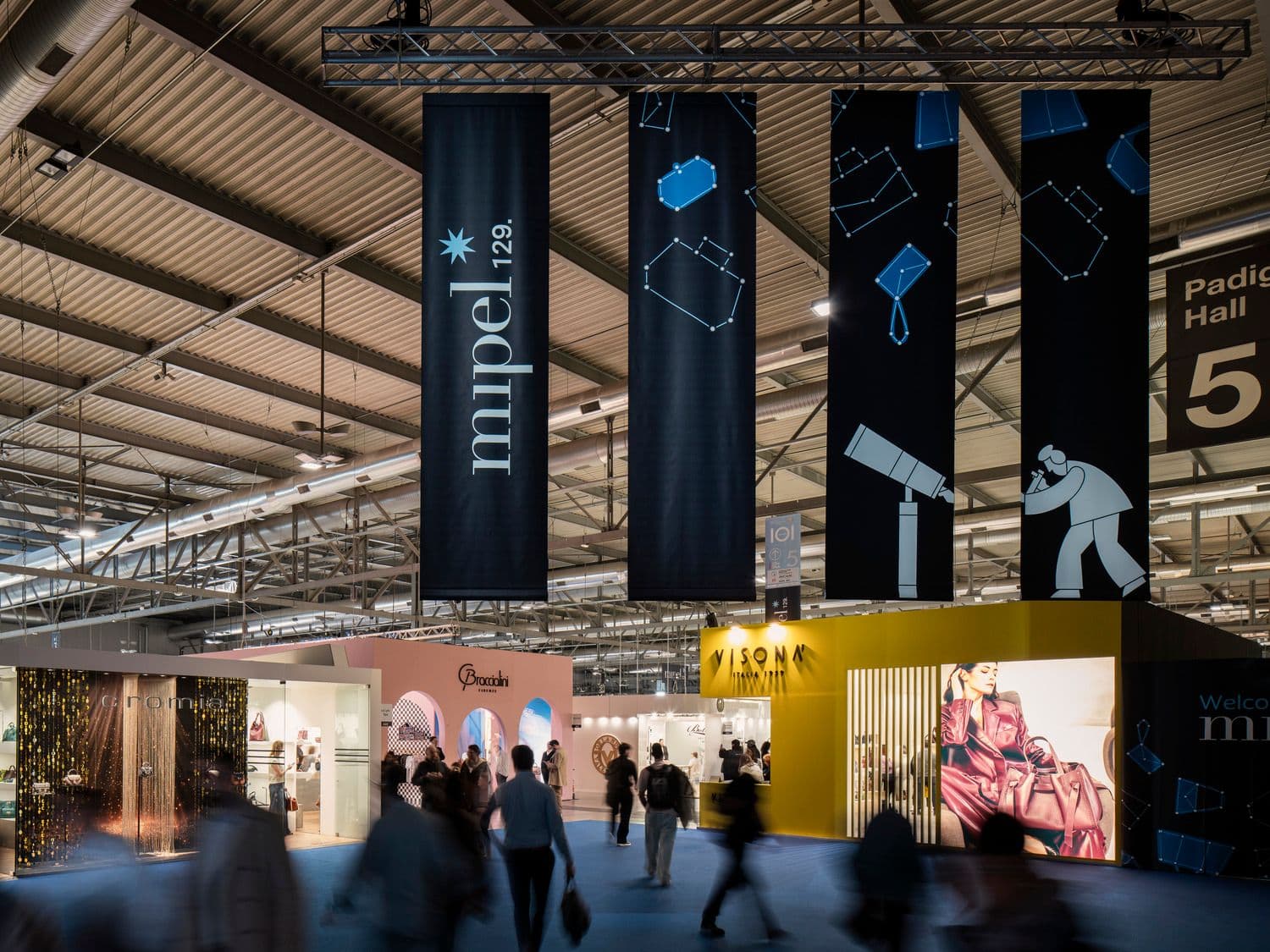 Il progetto introduce per MIPEL e MICAM un nuovo impianto spaziale ispirato alla struttura della città, articolato in boulevard, strade principali, percorsi secondari e una piazza centrale di connessione. Nel padiglione 5 di MIPEL il relayout prende avvio dall’area di ingresso, assunta come primo ambito di sperimentazione di una fruizione più ordinata ed efficace. All’interno del loop principale si distribuiscono vie minori che ospitano stand preallestiti di piccola, media e grande dimensione. La piazza centrale accoglie attività condivise, aree trend e dimostrazioni produttive, rafforzando il dialogo tra i due eventi.